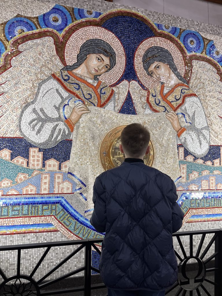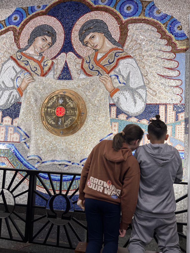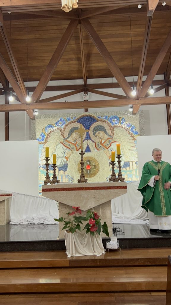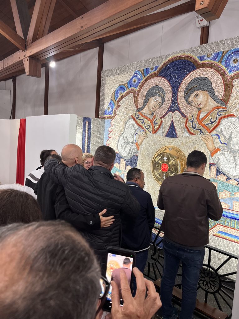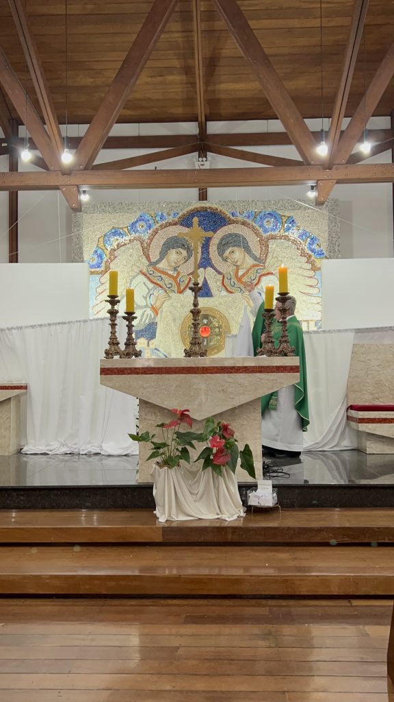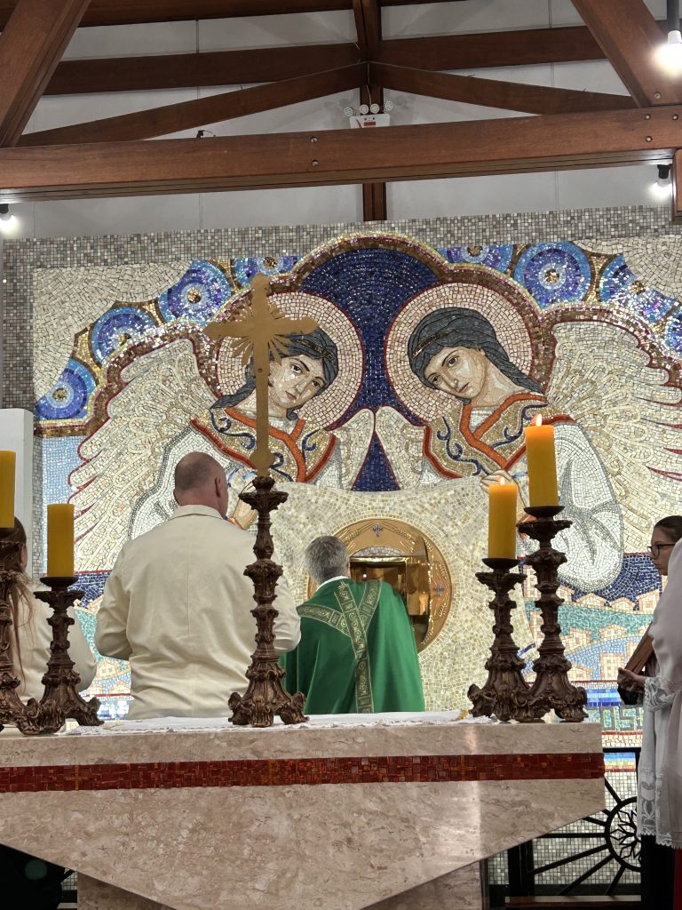 No centro do mosaico está o Tabernáculo, onde Jesus Eucarístico permanece exposto. Essa posição central nos recorda que Ele é o centro de tudo: da nossa vida, da Igreja e da nossa missão. Nada é mais importante do que a Sua presença viva entre nós.